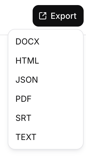 Výsledný přepis můžete exportovat do šesti různých formátů: