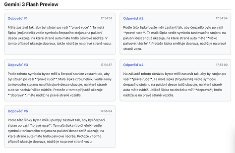 Gemini 3 Pro Preview - zcela správně (5:0)