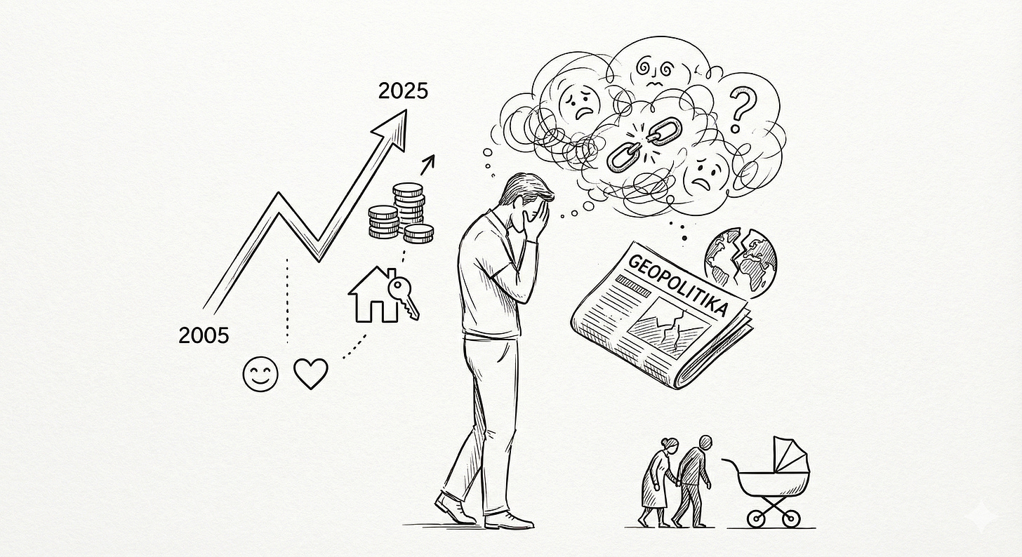 Rádi píšeme: máme se nejlíp, jak jsme se kdy v historii měli. Obvykle za tohle tvrzení dostaneme spousty lajků na sociálních sítích. Kontrastuje se špatnou náladou, kterou cítíme – mimo jiné – kvůli geopolitickým obavám, nástupu populistů či prostému faktu, že jako země „vymíráme”, a trend už nestačí moc brzdit ani přijímání imigrantů. Což je zároveň kontroverzní.