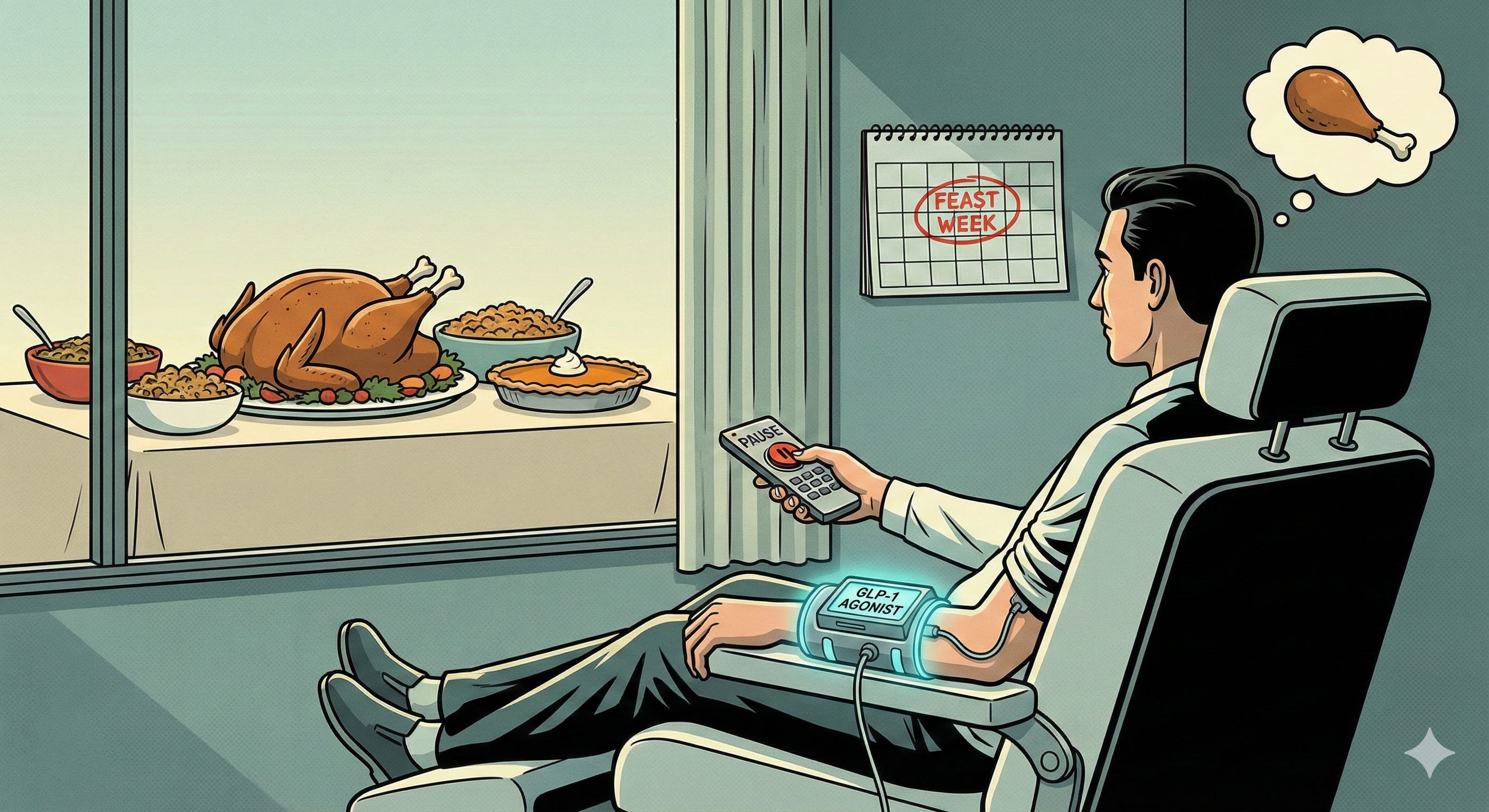 Co tedy sedmačtyřicetiletá žena trénuje? Naplánovala si dva měsíce dopředu návštěvy tělocvičny a běhá několikrát týdně, aby si u stolu s rodinou mohla dopřát krocana, nádivku i dýňový koláč? Nikoli. Zakladatelka úspěšné PR agentury zkoumá, kdy a na jak dlouho vysadit injekce Mounjaro, jedno ze zázračných léků na hubnutí. Důvod? Chce aby se jí aspoň na pár dnů vrátila chuť a radost z jídla.