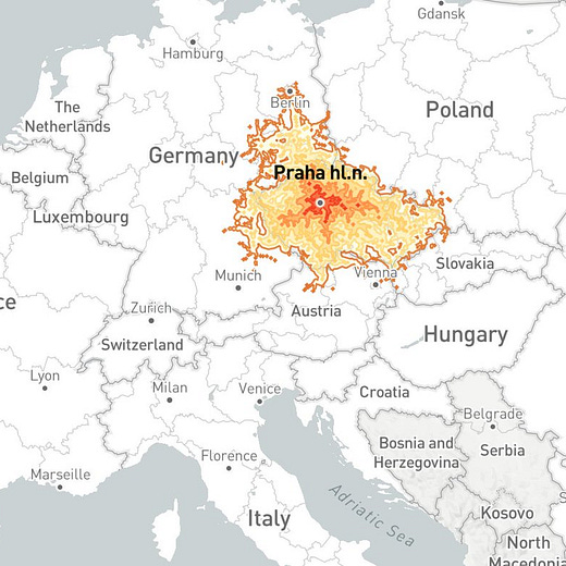 Koho by zajímalo, kde jsem obě mapy vytvořil, pak s pomocí skvělého webu Chronotrains. Je to hezký nástroj na hraní, a “cestovat” tu můžete prakticky z každého nádraží v Evropě. Doporučuju.